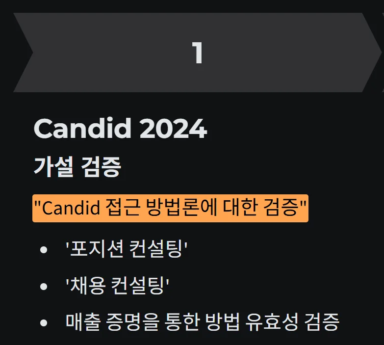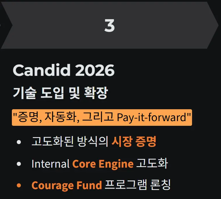 캔디드는 2023년 10월 법인 설립 이후, 2024년부터 본격적으로 메인 시장에서 움직이기 시작했습니다.