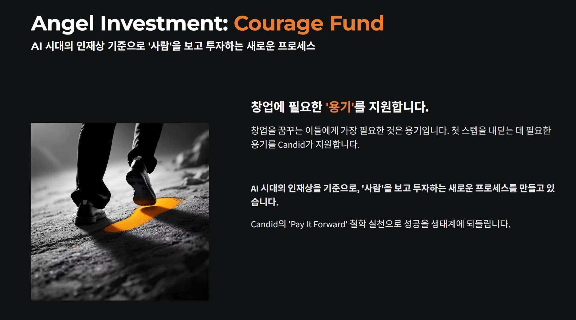 앞으로의 거시적인 경제 상황과는 별개로, 스타트업 생태계가 더 활성화되었으면 하는 생각에서 Courage Fund를 준비하고 있습니다.