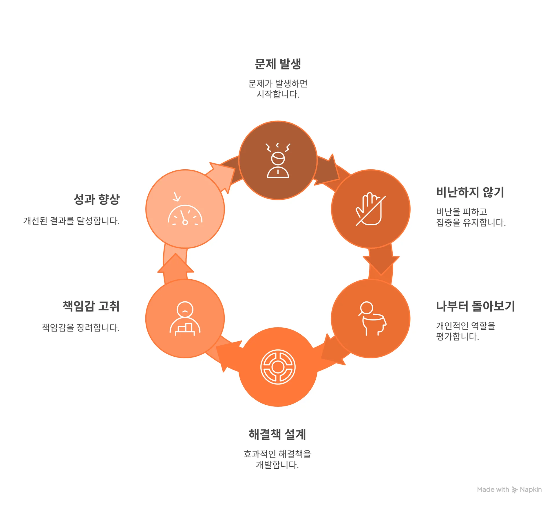 문제가 생겼을 때 누군가를 비난하면, 그 사람은 방어적으로 변하고 문제 해결보다 자기 보호에 집중하게 됩니다.