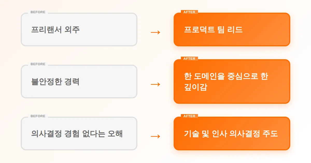 애매하다고 여겨졌던 프리랜서 경력은 리드 개발자 경험으로 재평가되었고,