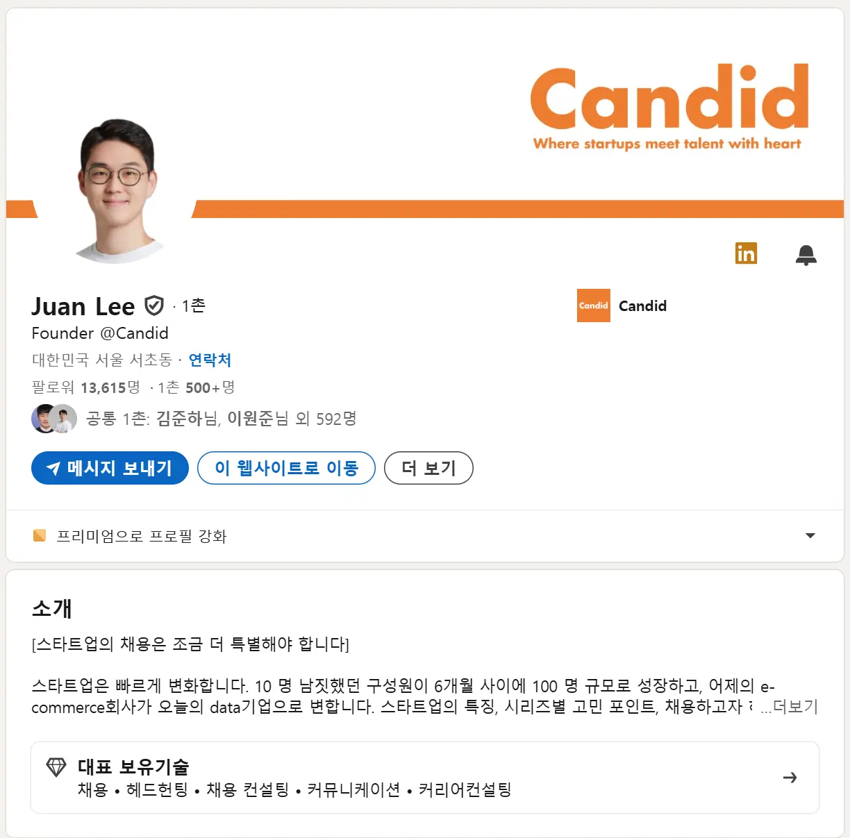 캔디드에서 연락을 드리는 건 단순히 경력이 좋아서가 아니라, 그분이 갖고 있는 경험이 특정 조직에 필요하기 때문입니다.